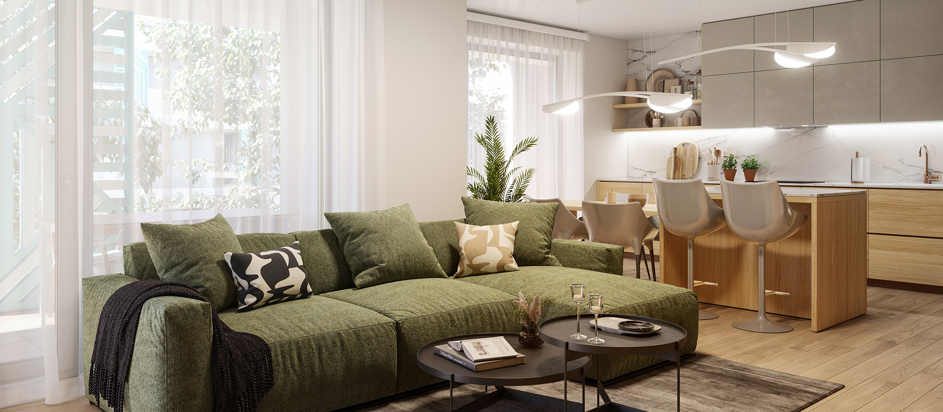 A többszobás, lakások tágas és elegáns terekkel, valamint extrém alacsony energiaszámlákkal várják lakóikat a kiemelkedő energiahatékonyságuknak köszönhetően. Az előszoba modern és praktikus kialakítása azonnal otthonos érzést kelt, miközben elegendő tárolóhelyet biztosít. A fürdőszoba dizájnja és természetes anyaghasználata friss, nyugtató hangulatot teremt. A gyerekszobák funkcionális alaprajza ideális a játékhoz és a tanuláshoz egyaránt, míg a hálószoba harmonikus atmoszférája biztosítja a pihentető alvást.